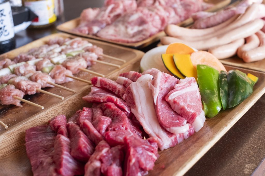 - 焼肉:沖縄県産 黒毛和牛、石垣島産 南ぬ豚、南ぬ豚のソーセージ